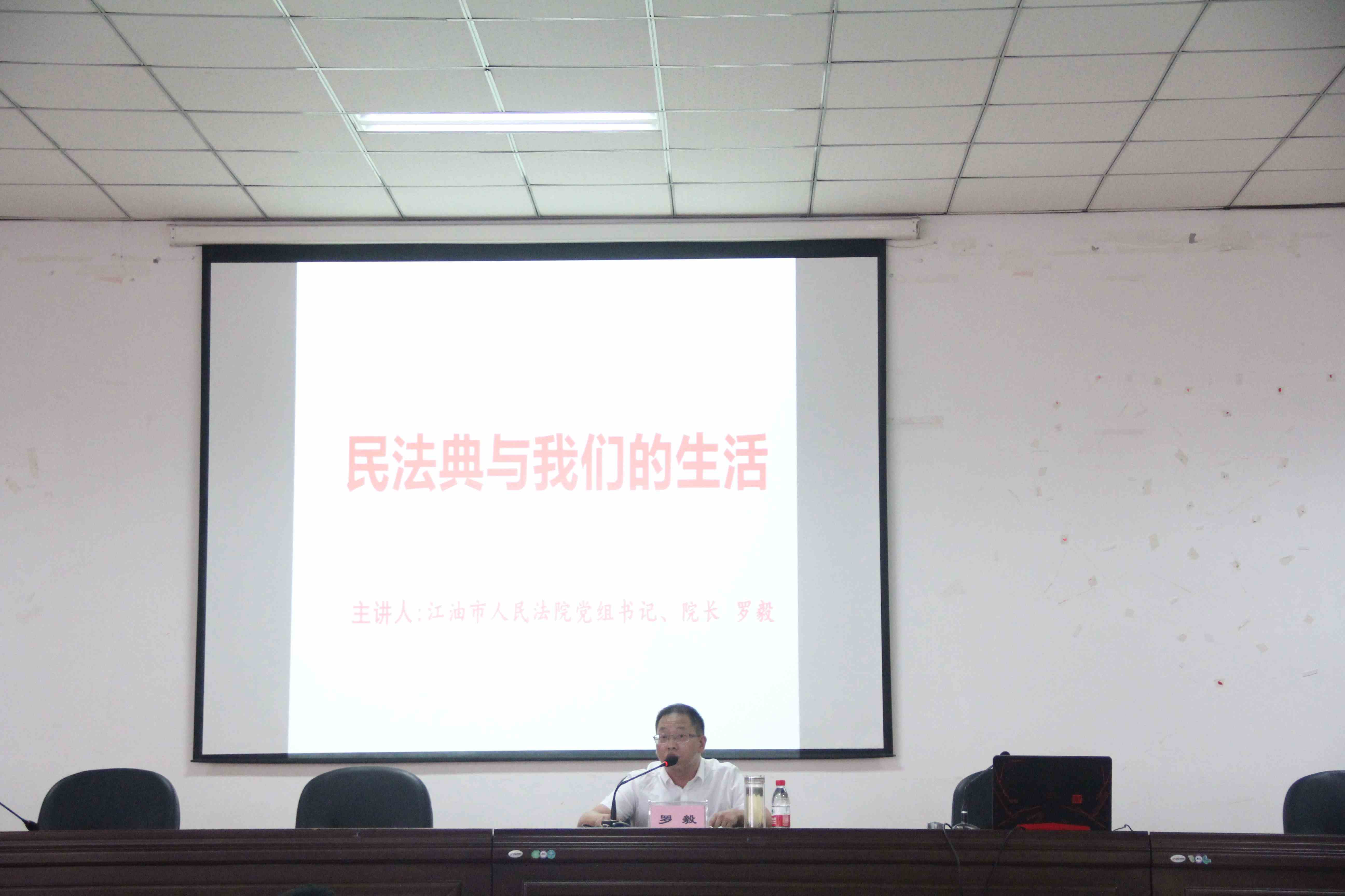 7月3日,按照“宪法法律进高校”的要求,江油法院党组书记、院长罗毅走进四川幼儿高等师范专科学校,为该校师生带去一堂生动的法律讲座——《民法典与我们的生活》。中共江油市委依法治市办主任、市司法局局长彭明建,中共江油市委依法治市办副主任、市司法局副局长史光辉,四川幼儿高等师范专科学校副校长廖智勇、秦莉红以及西校区各职能部门负责人、初等教育系、应用技术系师生代表参加宣讲活动。