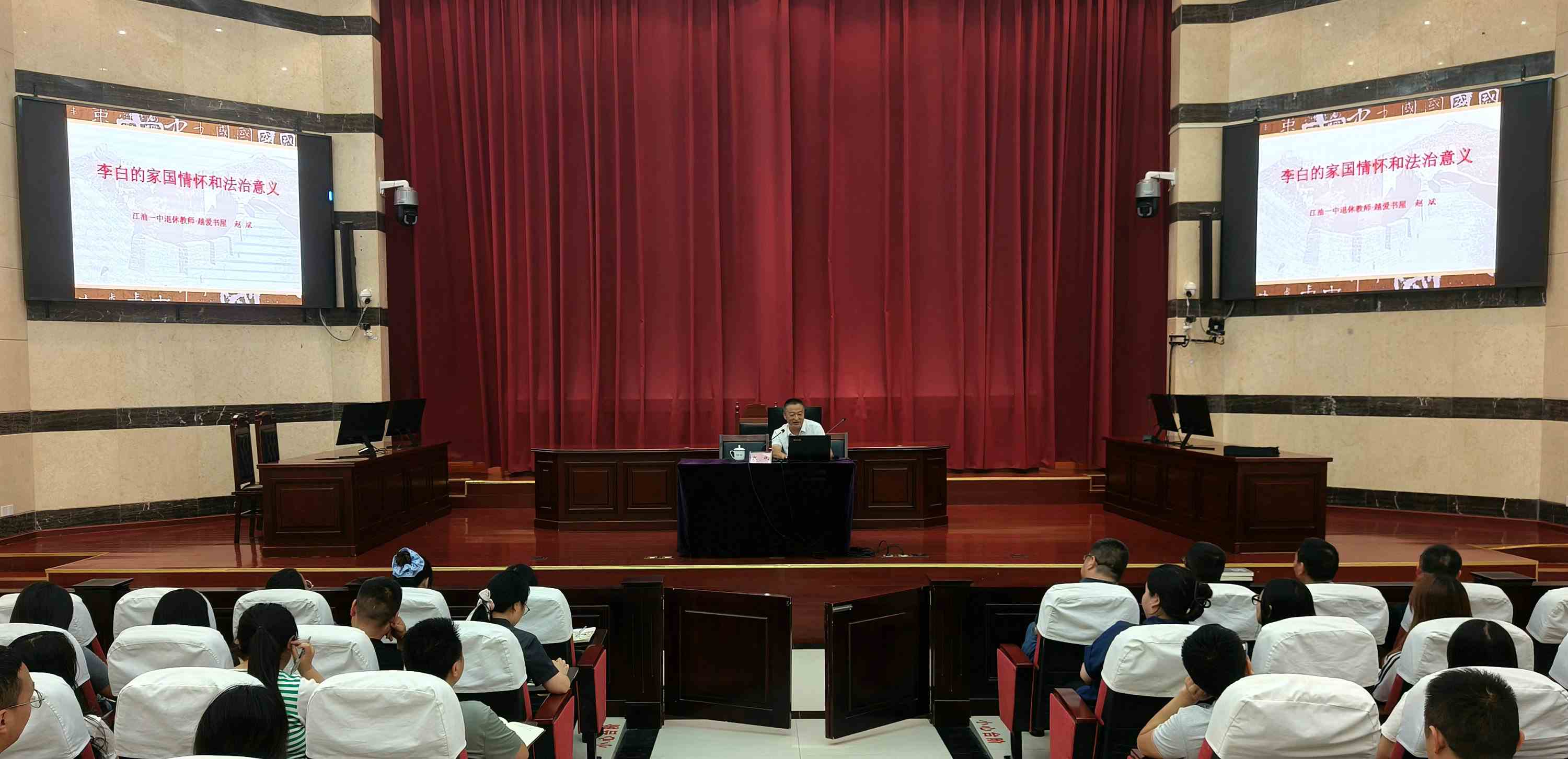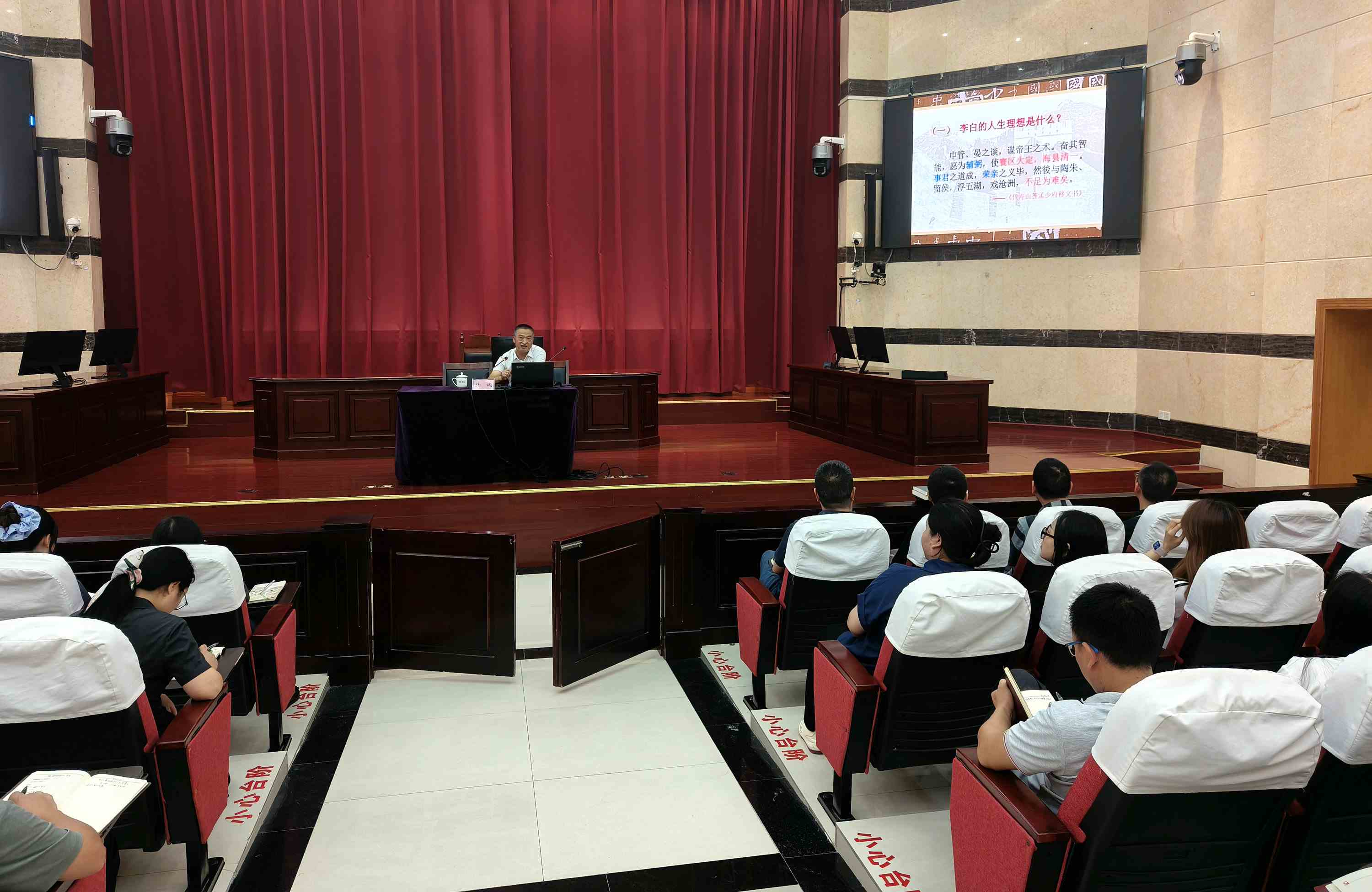 盛唐诗意穿越千载时空,今时重启依然叩响心弦。近日,江油法院邀请中国李白研究会会员、四川省李白研究会副秘书长赵斌莅临授课,以《李白的家国情怀与法治意义》为主题,带领全院干警沉浸式走进“诗仙”李白的精神世界,深入挖掘其精神内核中历久弥新的时代价值,为新时代司法工作注入传统文化的丰厚养分。